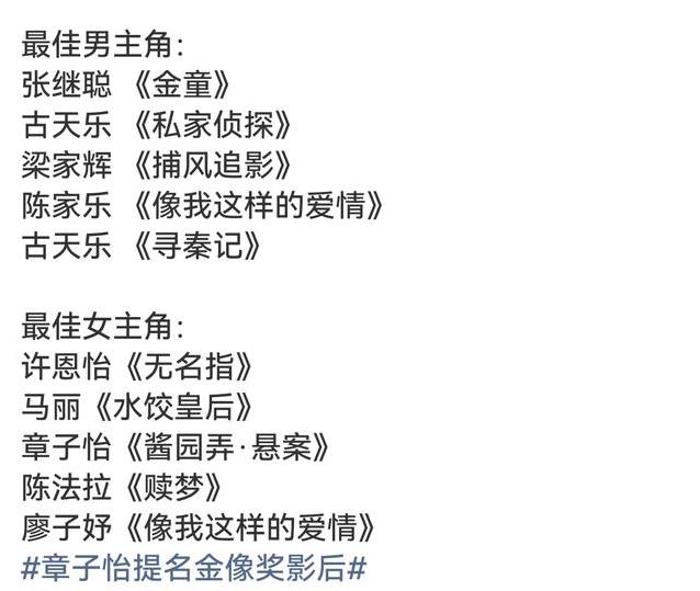 这次金像奖,四月十九日颁奖。其他提名者也很强,马丽、许恩怡、廖子妤、陈法拉,各有亮点。谁能拿奖,还得看评委怎么选。但章子怡的表演,已经赢得不少认可。三度封后会不会实现,大家都多了一份期待。